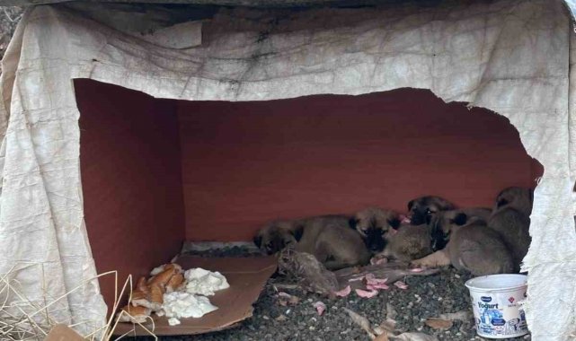 Elazığ'ın Karakoçan ilçesinde köy yoluna bırakılan 7 yavru köpeğe jandarma ekipleri sahip çıktı.