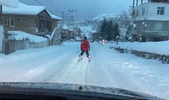 Kayak takımlarıyla köy yolundan kayarak inen Yasin Çapoğlu, "Hafta sonu havanın güzel olacağını duyunca köyümüze gitmeye karar verdik. Gittiğimizde yoğun bir kar yağışıyla karşılaştık. Evde ufak tefek eksikler vardı ancak alışverişe araçla gitmek yerine kayak takımlarımızı da yanımıza alarak farklı bir deneyim yaşamak istedik. Kayaklarla yüksek bir noktadan aşağı doğru kayarak markete ulaşmaya çalıştık. O anı gören yoldan geçen arkadaşlar da bize eşlik ederek güzel bir video çektiler. Tamamen tesadüf eseri gelişen bu olay, bizim için keyifli bir anıya dönüştü. Erzurum'da zaten kayak yapıyorduk, oradan bir tecrübemiz vardı. Kendi köyümüzde de deneyimlemiş olduk" dedi.