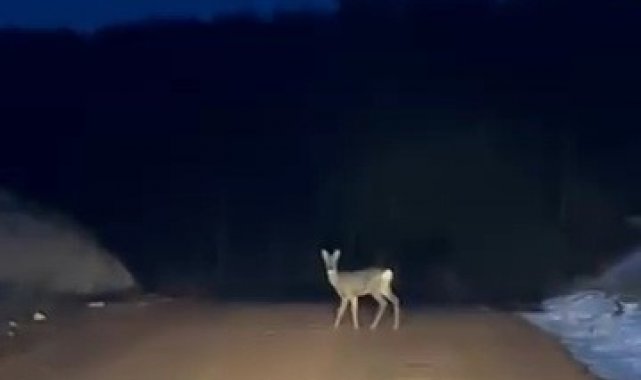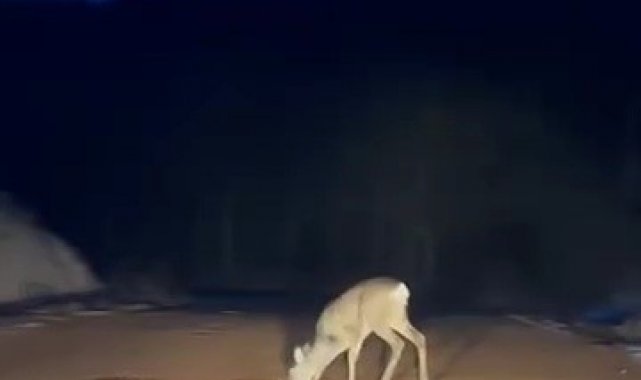 İlçeye bağlı Toprakcuma köyü yolunda aracıyla seyir halinde olan sürücü, yol ortasında oluşan çukurdan su içen karacayı fark etti. Karaca, bir süre daha su içtikten sonra gecenin karanlığında gözlerden kayboldu. O anları ise sürücü cep telefonu kamerasıyla görüntüledi.