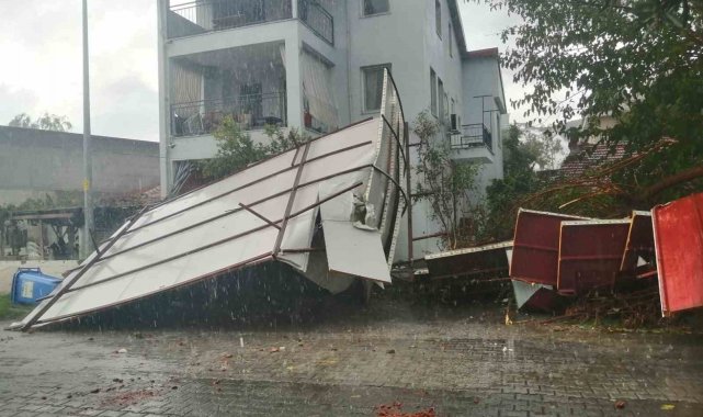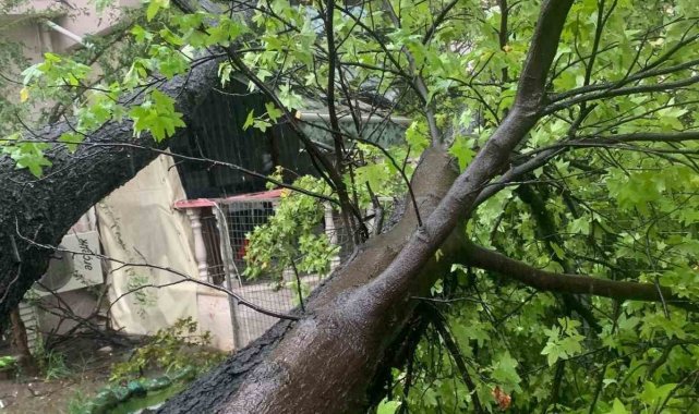 Muğla'nın Köyceğiz ilçesinde öğle saatlerinde etkili olan fırtına ve sağanak yağış sonrasında, bazı işyerlerini su basarken, bazı ağaçlar da fırtınaya dayanamayıp devrildi.