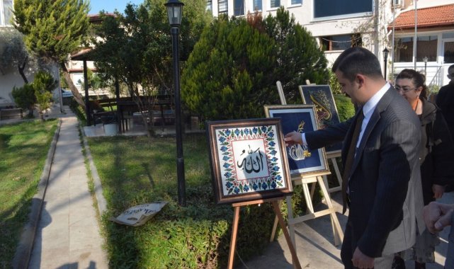 Muğla'nın Köyceğiz ilçesinde Sanatın Diliyle Değerlerimiz: Hat, Tezhip ve Ebru Eserleri Sergisi Halk Eğitim Merkezi bahçesinde açıldı.