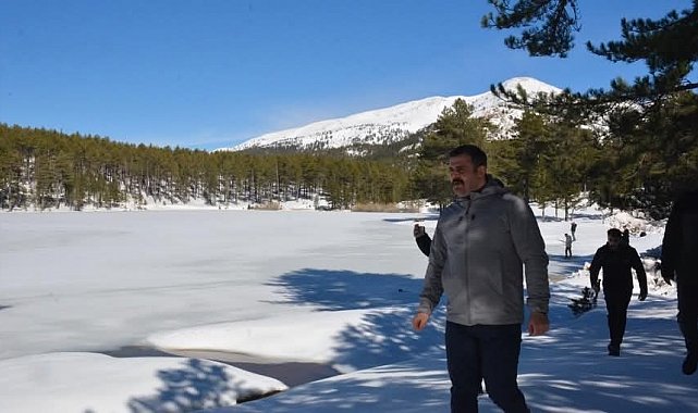 Muğla'nın Köyceğiz ilçesi Sandras Dağı'nda bulunan Gökçeova Göleti geçen hafta etkili olan karla kaplanarak dondu.