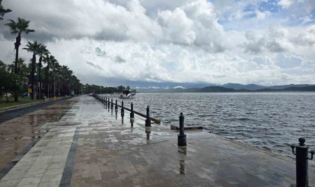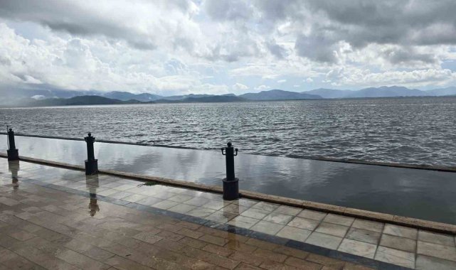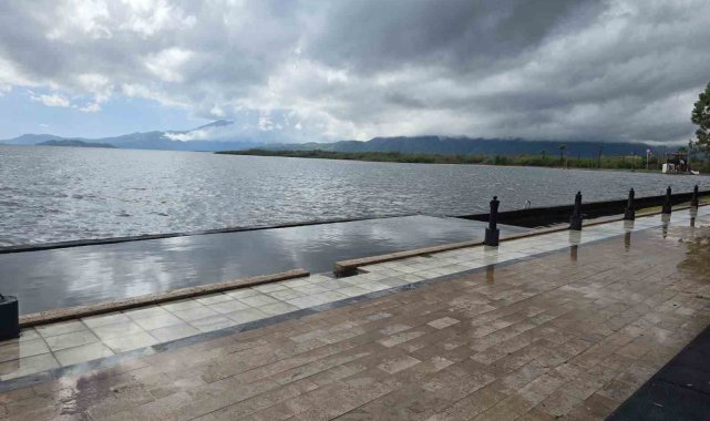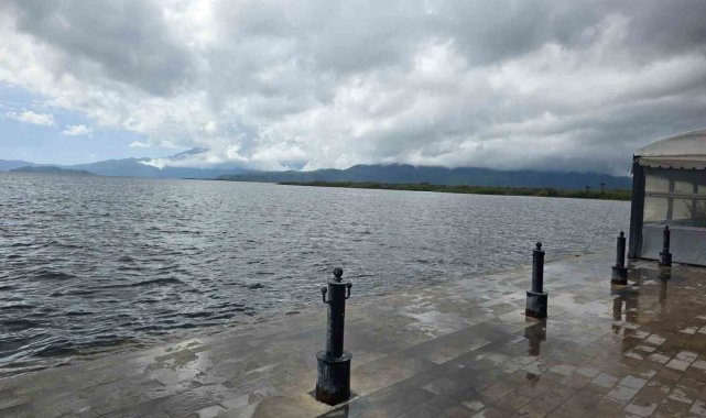 Köyceğiz Gölü, sabah saatlerinden bu yana etkili olan yağışlardan nasibini alırken, gölde su seviyesi yükseldi.