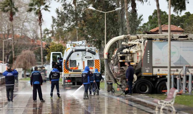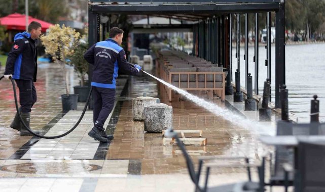 Çalışmalar kapsamında kordon boyu, ana caddeler ve ara sokaklarda yıkama ve temizlik işlemleri yapılarak biriken çamur, yosun ve çeşitli atıkların temizlenmesine yönelik çalışmalar gerçekleştirildi.