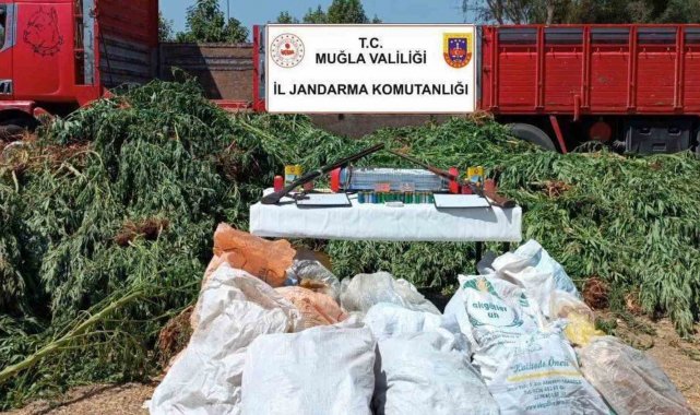 Uyuşturucu madde üretimi yaptığı tespit edilen A.Ö., B.Ö. ve A.Ö. isimli şahısların ikametinde Muğla İl Jandarma Komutanlığı ekipleri tarafından yapılan aramada, 5 bin 126 kök kenevir, 25 kilogram kubar esrar, 2 adet ruhsatsız av tüfeği, 122 adet fişek, 1,5 kg barut ve 2 adet tarihi eser niteliğinde obje ele geçirildi.