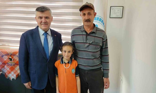 Sadaka kutusunu teslim eden Rumeysa'ya Müftü Karagöz çeşitli hediyeler ve Diyanet İşleri Başkanlığı yayınlarından kitaplar hediye ederek uğurladı.