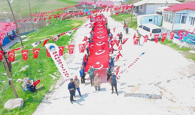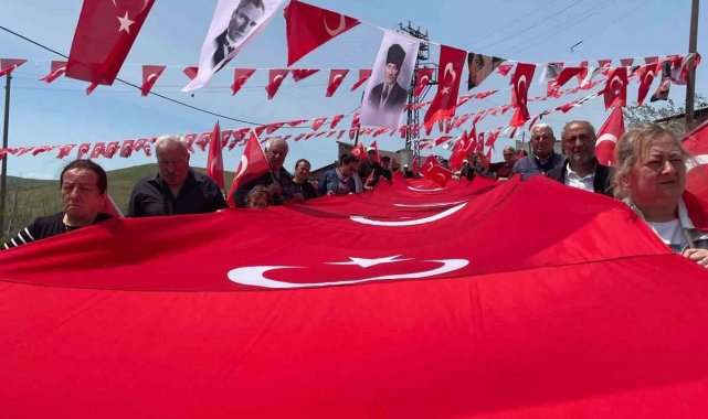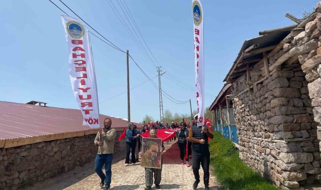 Köyde 24 metrelik Türk bayrağıyla yürüyüş gerçekleştirildi