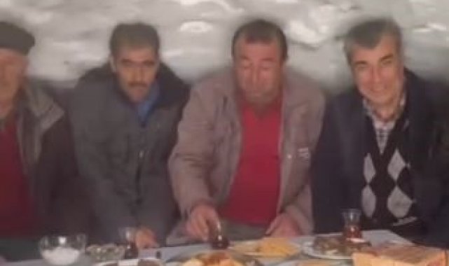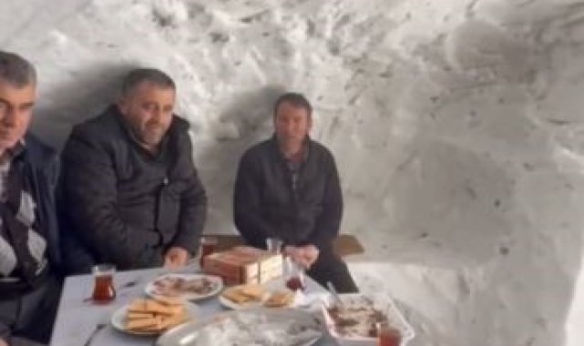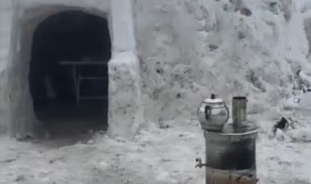 Sivas'ta bir köyde yaşayan vatandaşlar, yoğun kar yağışını fırsata çevirerek kardan çay ocağı yaptı. Kardan yapılan çay ocağının üzerine Türk bayrağı asılarak birlik ve beraberlik mesajı verildi.