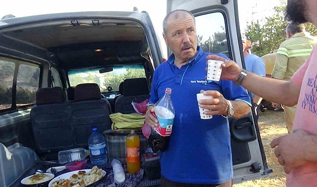 Köylü çiftten yangın söndürme ekiplerine yemek desteği