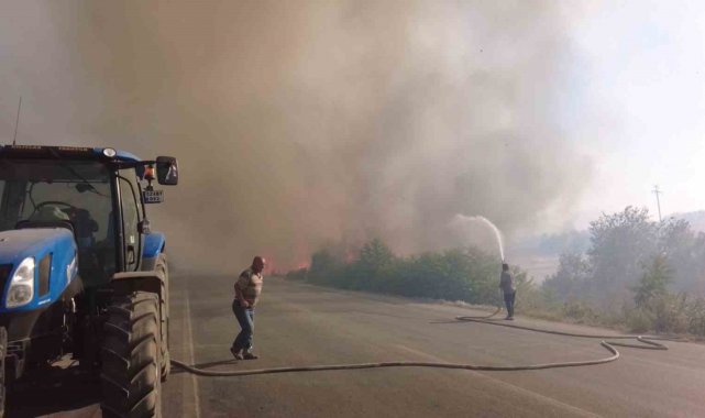 Köylüler traktör ve su tankerleriyle sırayla yangın nöbeti tutuyor