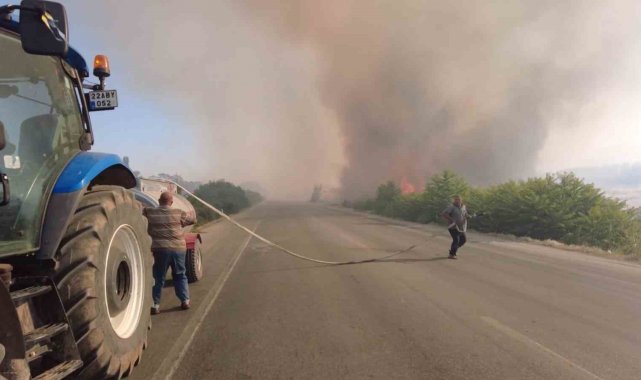 Edirne'de hazırlanan nöbet listesine göre yangın nöbeti tutan köylüler, sabahın erken saatlerinde traktör ve su tankerleriyle köy meydanında görev başı yapıyor.