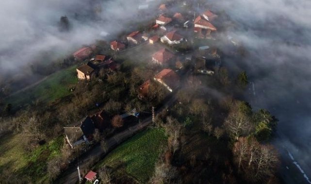 Doğayla iç içe konumlanan köy, sisin etkisiyle masalımsı atmosfere büründü.