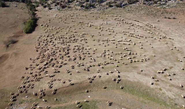 Adana'nın Kozan ilçesinde koyun ve kuzuların buluşması dron ile görüntülendi.