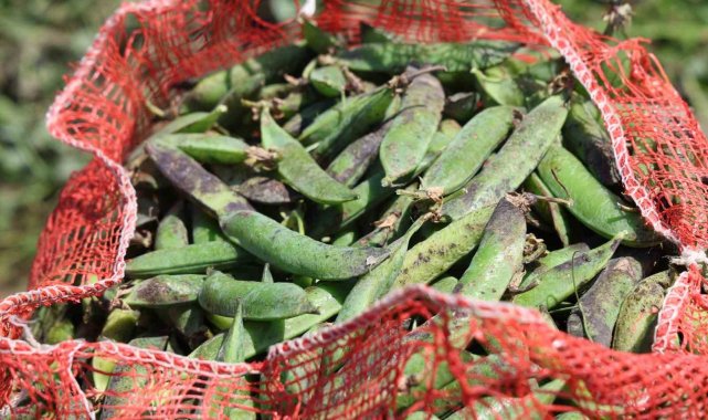 Adana'da bir üretici, hasat ettiği bezelyeleri, yüksek rekolte nedeniyle hamsiye benzetti.