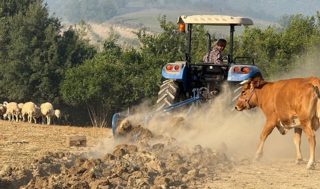 Adana'nın Kozan ilçesinde çıkan orman yangınına ekiplerin havadan ve karadan müdahalesi sürereken, vatandaşlar da kendi canlarının yanı sıra hayvanlarını da korumak için traktörlerle tarlaya topladıkları sürülerini koruma altına almaya çalıştı.