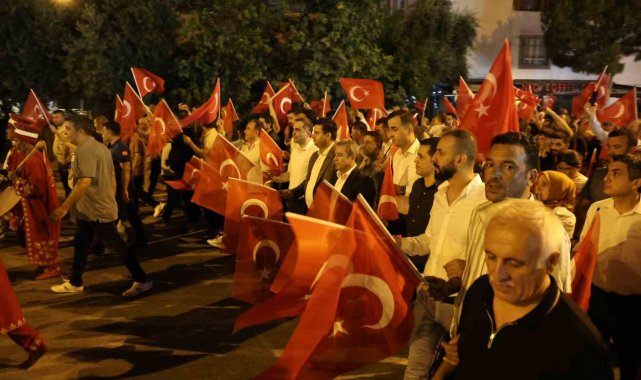 Türk bayrakları ve mehteran takımı eşliğinde marşlarla yürüyen vatandaşlar, 15 Temmuz Türk Büyükleri meydanında bir araya geldi. Saygı duruşu ve İstiklal Marşı'nın okunmasıyla başlayan program, Kur'an-ı Kerim tilaveti ile devam etti. Ardından İlçe Müftüsü Mustafa Kaya, ülkemizin birlik ve bütünlüğü için dua etti; şehitlerin kahramanlıklarına ve vatan sevgisine vurgu yaptı.