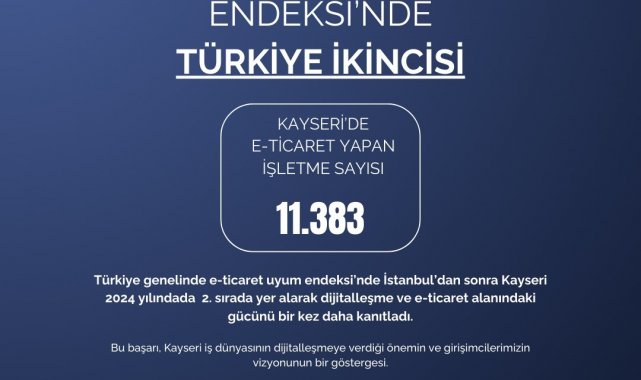 Kayseri Ticaret Odası (KTO) Başkanı Ömer Gülsoy; Ticaret Bakanlığı'nın Elektronik Ticaret Bilgi Sistemi (ETBİS) raporunu değerlendirdi. Gülsoy; "E-Ticaret Uyum Endeksi sonuçlarında İstanbul'dan sonra Kayseri ikinci sırada yer aldı. 2024 yılında e-ticaret yapan firma sayımız 11 bin 383'e yükseldi. Bu başarı, Kayseri iş dünyasının dijitalleşmeye verdiği önemin ve girişimcilerimizin vizyoner yaklaşımının açık bir göstergesidir. Akıl ve alın teriyle
