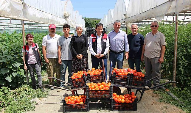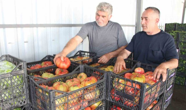 Köy muhtarı Halil İbrahim Kara ile köyde ilk domates hasadı yapan çiftçilerden olan Mehmet Türkmen ise Mart ayında toprakla buluşturdukları günden bu yana büyük emeklerle yetiştirdikleri domateslerinin doğrandığında yaydığı koku, lezzeti, aroması ve rengiyle de göz doldurduğunu işaret ettiler.