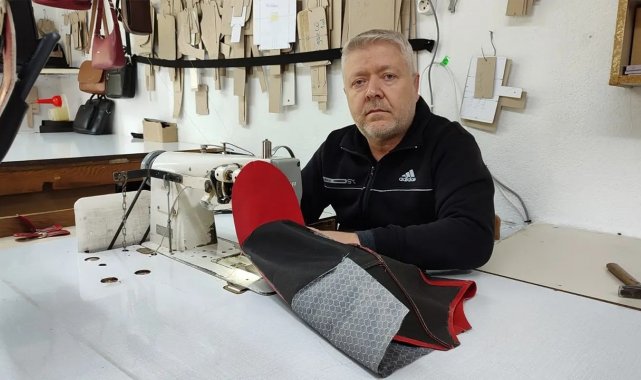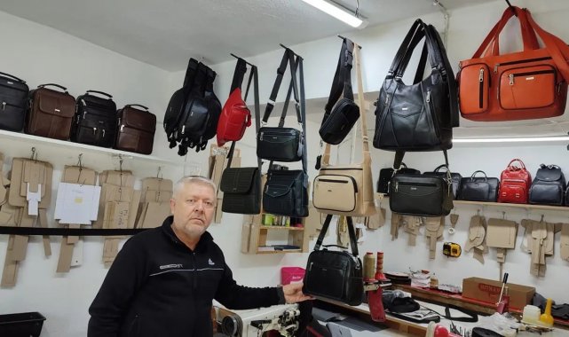 Küçük atölyesinde eliyle diktiği deri ürünleri Türkiye'nin her yerine gönderiyor