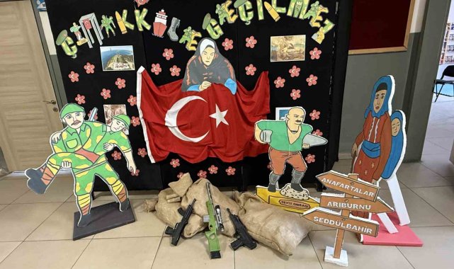 Seyit Onbaşı'nın kahramanlığından etkilenen 8 yaşındaki öğrenci, okul köşesindeki maketine selam vererek izleyenleri duygulandırdı.