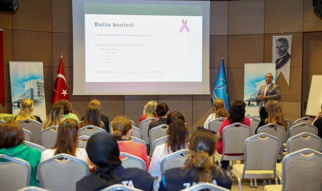 Belediye Binası Çok Amaçlı Salonu'nda gerçekleştirilen seminerde, meme kanseri risk faktörleri, riski azaltan faktörler, tarama yöntemleri, belirtiler, erken tanının önemi gibi konularda personele ayrıntılı bilgi verildi.