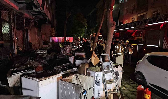 Küçükçekmece'de beyaz eşya deposunda çıkan yangın 3 katlı binayı kül etti