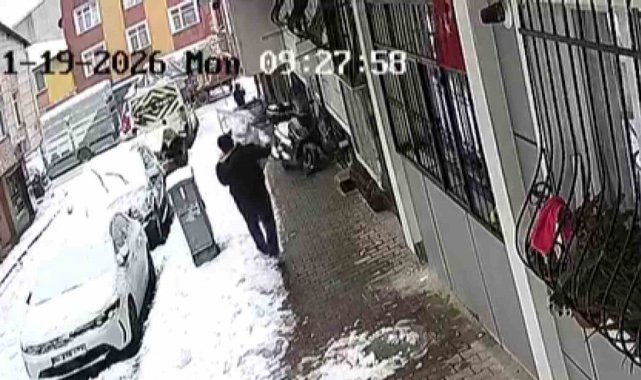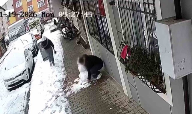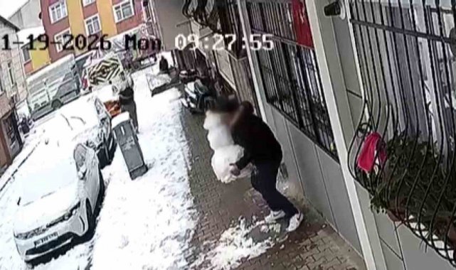 Küçükçekmece'de bir kişi, çocukların yaptığı kardan adamı alıp götürdü. Şahsın yerinden oynattığı kardan adamın bir kısmı dağılırken, o anlar güvenlik kamerasına böyle yansıdı.