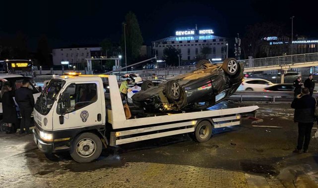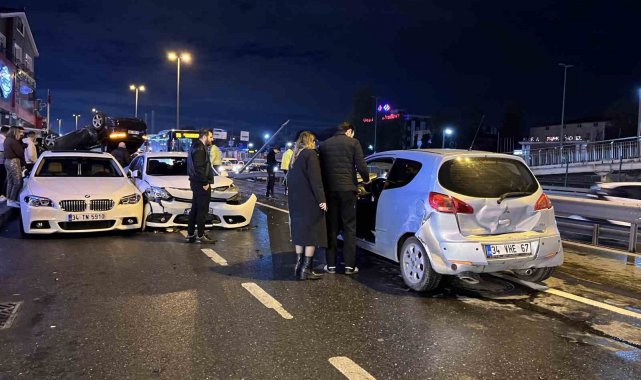 Küçükçekmece'de E5 karayolu yan yolda bariyerlere çarpan otomobil, ardından başka bir araca çarpıp takla attı. Kazaya karışan dört araçta hasar meydana gelirken, 3 kişi yaralandı.