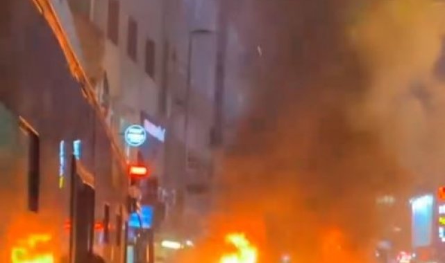 Küçükçekmece'de Galatasaraylı taraftarların havai fişekle yaptığı şampiyonluk kutlaması sırasında yangın çıktı. Alevler içinde kalan araç, itfaiye ekiplerince söndürüldü.
