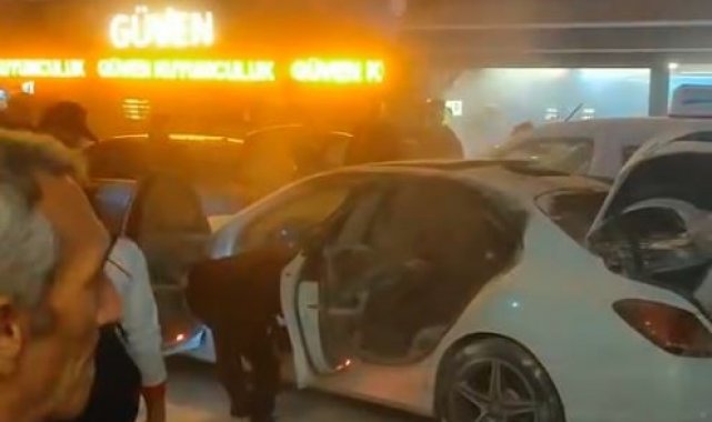 Küçükçekmece'de havai fişekli kutlamada yangın çıktı, araç küle döndü
