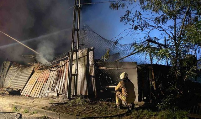Küçükçekmece'de iş yerinde çıkan yangın elektrik tellerine sıçradı. Ekiplerin yangına müdahalesi sürüyor.