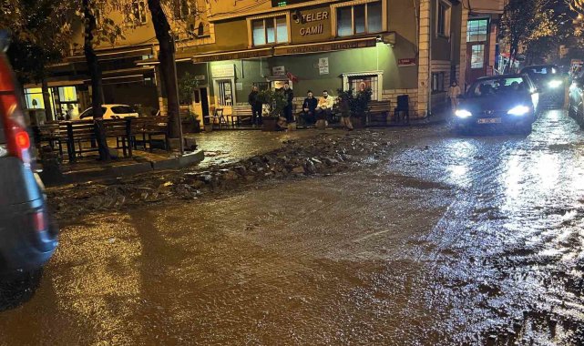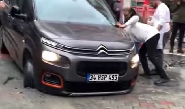 Küçükçekmece ilçesinde İSKİ'nin çalışma yapıp kapattığı yolda sağanak yağışın etkisiyle çökme oluştu. Sokaktaki iki araç çukura düşerken araçlar iş makinesi tarafından çıkarıldı.