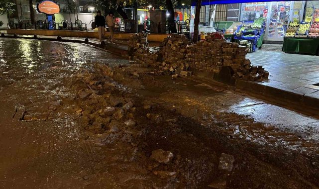 Küçükçekmece'de yağmur sonrası çöken yolda, araçlar çukura düştü