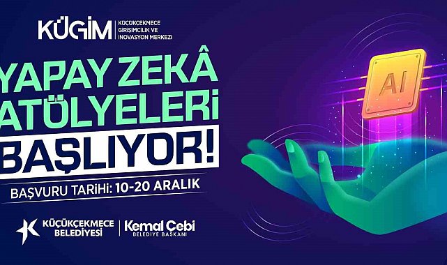 Küçükçekmece Belediyesi Girişimcilik ve İnovasyon Merkezi (KÜGİM) bünyesinde Yapay Zekâ Atölyeleri başlıyor. 20 Aralık'a kadar başvuruların devam edeceği Yapay Zekâ Atölyelerine 10 yaş üzeri herkes başvurabiliyor.