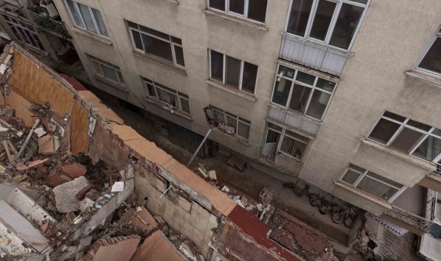 Küçükçekmece'de yıkımı yapılan binadan kopan beton parçaları yan binanın üzerine düştü
