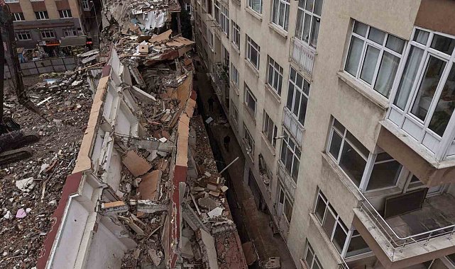 İstanbul Küçükçekmece'de kentsel dönüşüm kapsamında iş makinesi ile yıkımı yapılan binadan kopan parçalar yan binanın üzerine devrildi. Yıkımda can kaybı ve yaralanma olmazken, yıkım esnasında vatandaşların kaçmaya çalıştığı anlar güvenlik kamerasına yansıdı. Yıkımın olduğu bina ve çevresi havadan görüntülendi.