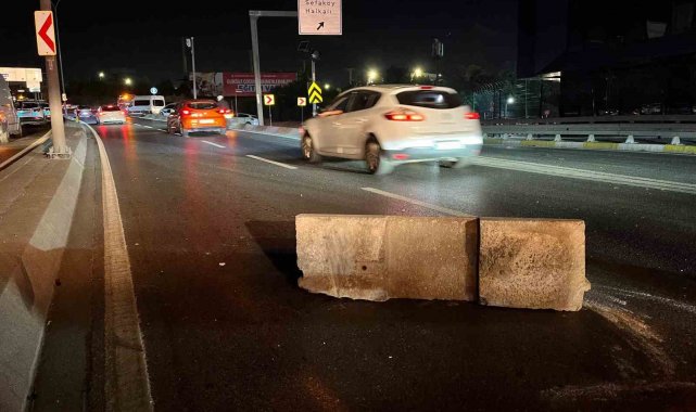 Küçükçekmece E-5'te beton bariyere çarpan otomobil yan yola girdi