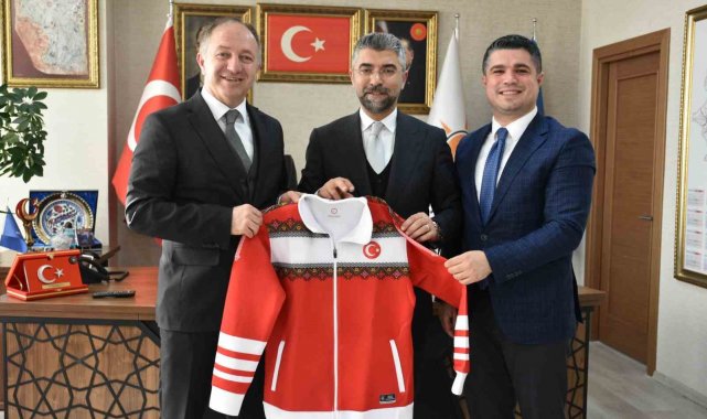Yeni atanan ilçe müdürleriyle birlikte AK Parti İl Başkanı Av. İbrahim Küçükoğlu'nu ziyaret eden Erzurum Gençlik ve Spor İl Müdürü Levent Çakmur, süreçte gösterdiği ilgi ve destekleri için Başkan Küçükoğlu'na teşekkür ederek milli forma hediye etti.
