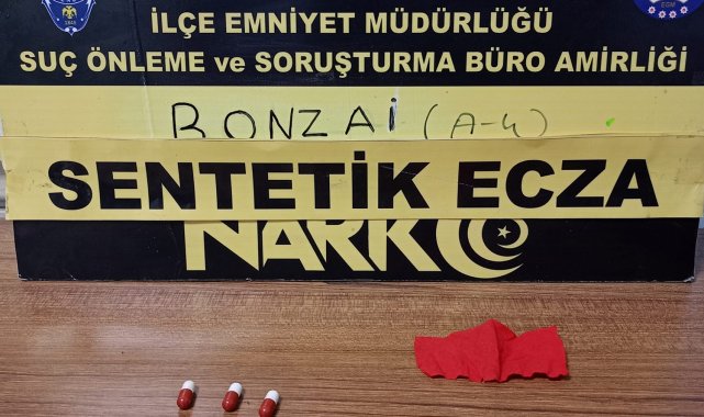 G.K. (23), H.İ.A. (27) ve M.K. (27) üzerinde 180 içimlik kannabinoid, 80 içimlik bonzai ve 3 adet Lyrica hap, E.C.Ö. (20) üzerinde 13 adet Galara hap, A.D. (38) ve M.A. (35) üzerinde 0,40 gram metamfetamin, S.B. (26) üzerinde 0,36 gram Jamaika, V.H. (30) ve M.K. (22) üzerinde 53 Galara hap, 2 adet 14'lü, 1 adet 5'li ve 1 adet 7'li blister hap, S.G. (27), S.Ö. (24) ve A.E. (26) üzerinde ise 5 adet Lyrica hap, 2,27 gram esrar ve 1 adet uyuşturucu kullanım aparatı (bank) ele geçirildi.