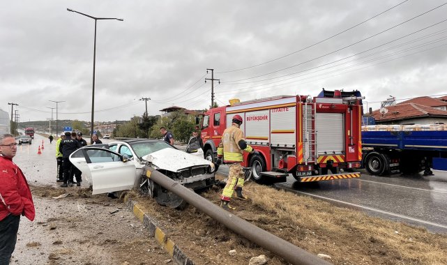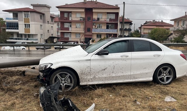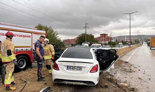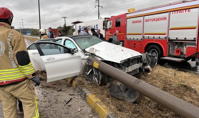 Manisa'nın Kula ilçesinde yağışlı hava nedeniyle kayganlaşan yolda direksiyon hakimiyetini kaybeden otomobil, orta refüje çıkarak aydınlatma direğine çarptı. Kazada şans eseri yaralanan olmadı.