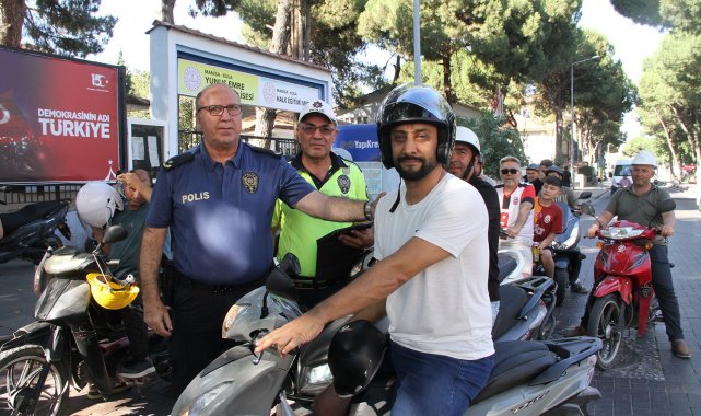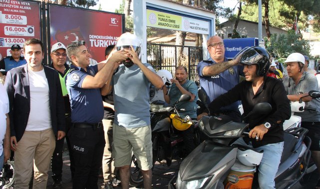 Kula'da motosiklet sürücülerine ücretsiz kask dağıtıldı
