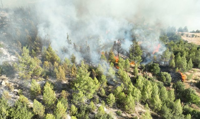 Manisa'nın Kula ilçesinde ormanlık alanda yangın çıktı. Rüzgarın da etkisiyle hızla geniş alana yayılan yangına ekiplerin havadan ve karadan müdahalesi sürüyor.