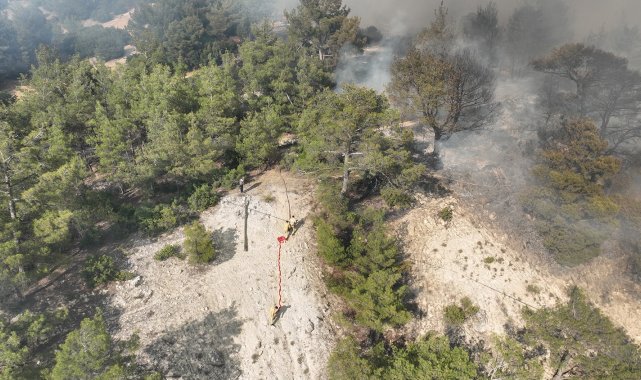 Yangına müdahale çerçevesinde 7 helikopter ve 2 yangın söndürme uçağı, sabah saatlerinden itibaren çalışmalarını aralıksız sürdürüyor. Bölgedeki yangın yoğunluğu nedeniyle bazı ekiplerin çevre bölgelerden takviye amacıyla yönlendirildiği öğrenildi. Yangının şu anda yaklaşık yüzde 90 oranında kontrol altına alındığı bildirildi. Sahada 35 arazöz, 8 itfaiye aracı, 19 su tankeri, dozer ve kepçelerden oluşan çok sayıda iş makinesi ile müdahale devam ediyor. Ayrıca Cemar Traverten Mermer Fabrikası ve çevre işletmelerden gelen araç ve ekipmanlar da çalışmalara destek veriyor. Toplam 240 personelin yanı sıra mahalle halkı da traktör ve çeşitli ekipmanlarla söndürme ve soğutma faaliyetlerine gönüllü olarak katılıyor.