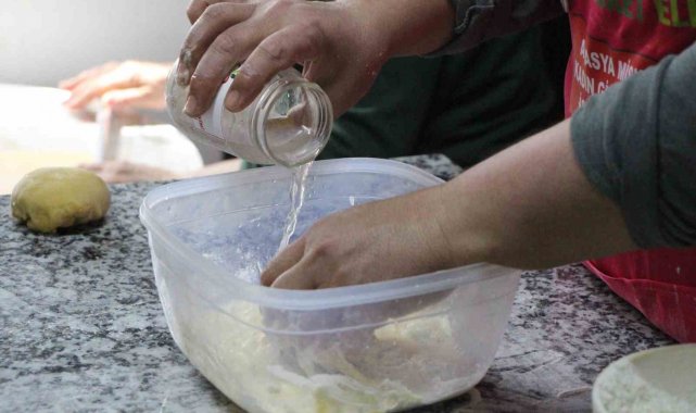Odun ateşinin külünü elekten geçirip süzen kadınlar, önce suyla karıştırıyor. Birkaç gün dinlendirilen su sonra hamura katılıyor. 200 yılı aşkın süredir uygulanan bu geleneksel yöntemin tatlıya gevreklik ve lezzet kattığı düşünülüyor.