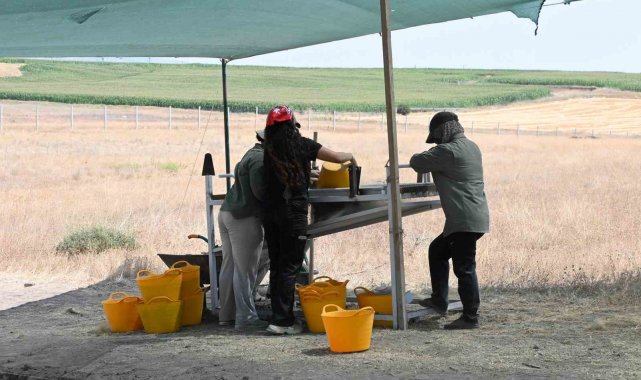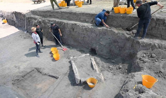 Küllüoba Höyüğü'ndeki mezarlık alanında çok önemli veriler elde ettiklerini dile getiren Prof. Dr. Murat Türktekin, "Burası bize insanların yaşamıyla ve besinleriyle ilgili çok önemli veriler sunmuştu. O nedenle çalışmaya devam ediyoruz. Mezarlık, milattan önce 3200-2900 aralığında tarihleniyor. Yani, bu gömülmüş evlerin bulunduğu alanla aslında çağdaş ve yaklaşık 100 metre ötesinde. Burada 160'dan fazla birey ortaya çıkarıldı. Bu bireyler üzerinde yaptığımız incelemelerde tahıl ağırlıklı bir tüketimin yaygın olduğunu ancak sosyal hiyerarşide de bazı farklılıkların olduğunu, bazı protein ağırlıklı beslenen kişilerin de bulunduğunu ve hatta onların farklı bir şekilde gömüldüklerinde ortaya çıkardık. Özellikle diş antropologların yaptığı diş incelemeleri bize bunu gösterdi. Yine çocuk ölümünün çok fazla olduğunu burada tespit etmiştik. Zaman zaman sosyal çatışmaların yaşandığını gösteren örneklerimiz de burada bulunuyordu. Bu nedenle de burada yine çalışmalara devam ediyoruz. Özellikle tabii 2900 yılında tespit etmiş olduğumuz bir taş sanduka mezar var. Taş sanduka mezar içerisinde 2 kişi gömülmüş. Birisi 31 yaşlarında bir erkek, diğeri de 12 yaşlarında bir çocuk. Bunların özelliği, ikisinin de kafalarına sert bir cisimle vurularak öldürülmüş olmaları. Bu sanki bir baba-oğul veya yönetici olarak, belki bir konumları varsa ya da soyun önüne geçmek için gerçekleştirilmiş olmalı diye düşünüyoruz. Yerleşmede böyle bir çatışma süreci yaşanmış gibi görünüyor" dedi.