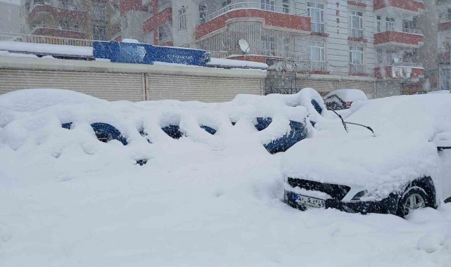 Kulp'ta 10 yılın en yoğun kar yağışı: Araçlar kar altında kaldı