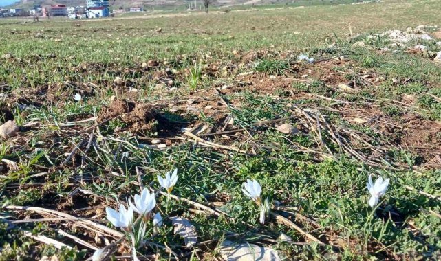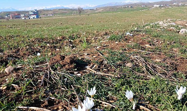 Diyarbakır'ın Kulp ilçesinde etkili olan kar yağışı ve ardından gelen yağmurlarla birlikte, baharın müjdecisi çiğdemler kırsal alanlarda yüzünü gösterdi.
