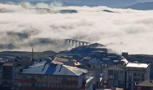 Son yılların en sert kışının yaşandığı Diyarbakır'ın Kulp ilçesinde, yağışlı günlerin ardından yüzünü gösteren güneşle birlikte ilçe merkezi sis tabakasıyla kaplandı. Kulp Çayı üzerindeki köprünün sisle örtülmesi kartpostallık görüntüler ortaya çıkardı.