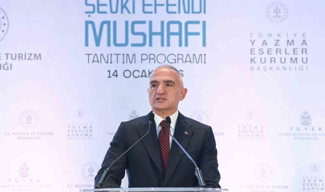 Bakan Ersoy, Türkiye Yazma Eserler Kurumu Başkanlığı'nca hazırlanan Mehmed Şevki Efendi'ye ait Mushaf-ı Şerif Kitap Tanıtım Toplantısı'na katıldı. Atatürk Kültür Merkezi'nde (AKM) düzenlenen program Kuran-ı Kerim tilavetiyle başladı.