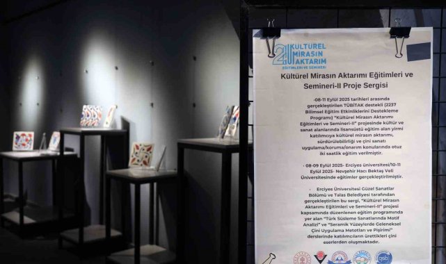 TÜBİTAK tarafından desteklenen proje, Erciyes Üniversitesi (ERÜ), Talas Belediyesi ve Kayseri Üniversitesi iş birliğiyle gerçekleştirildi. İki günlük uygulamalı eğitimlerin sonunda ortaya çıkan eserler, 'Kültürel Mirasın İzinde' başlığıyla sanatseverlerin beğenisine sunuldu. Sergide; Türk süsleme sanatlarında motif analizi ve seramik yüzeylerde geleneksel çini uygulama metotları ele alındı. Katılımcılar, geleneksel Türk çini sanatının estetik inceliklerini, tarihsel köklerini ve çağdaş yorumlarını yakından tanıma fırsatı buldu. Etkinliğin açılışında konuşan ERÜ Rektörlük Güzel Sanatlar Bölümü Öğretim Görevlisi Dr. Mehpare Yağlıcı, öğrencilerin heyecanını paylaşarak şunları söyledi;